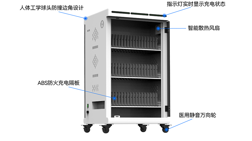 ABS防火隔板的設(shè)計,進一步提高了平板充電柜的散熱能力增強了安全性,并且隔板采用塑膠材質(zhì),可以防止劃傷電子設(shè)備。
