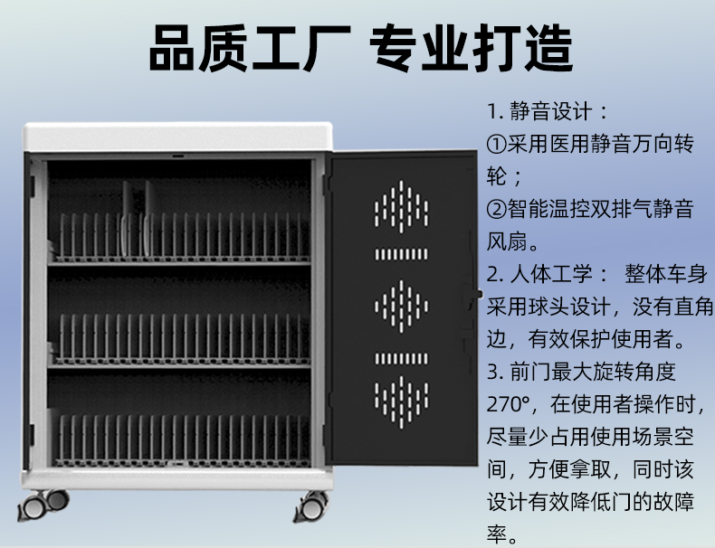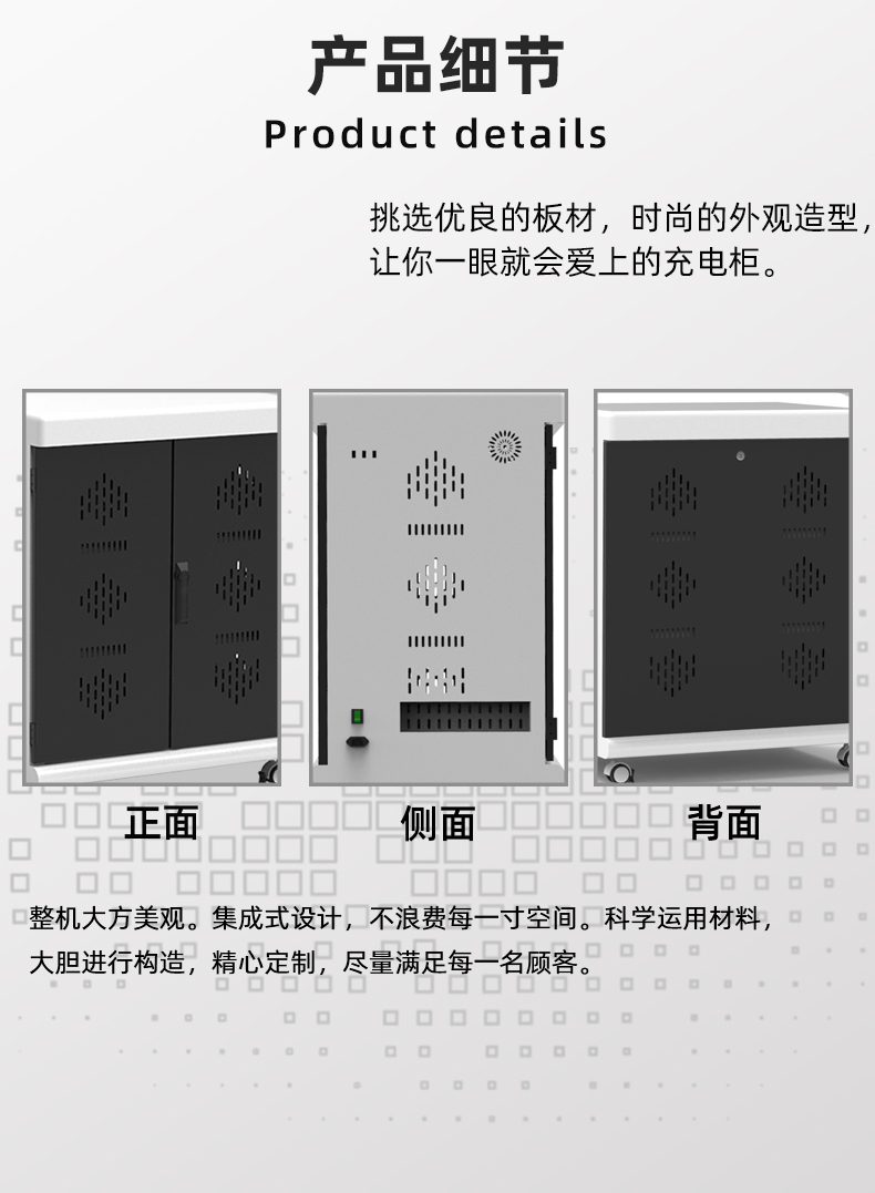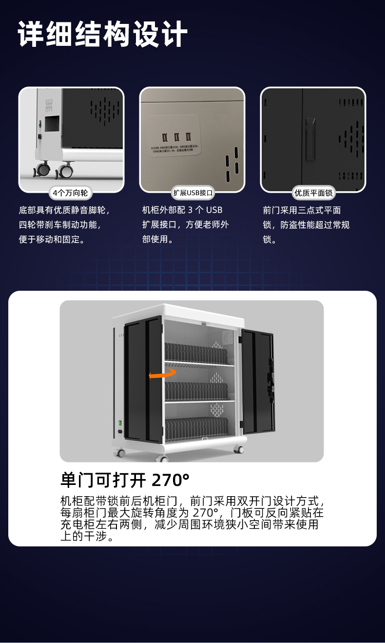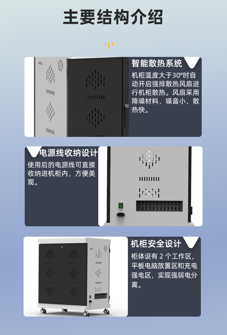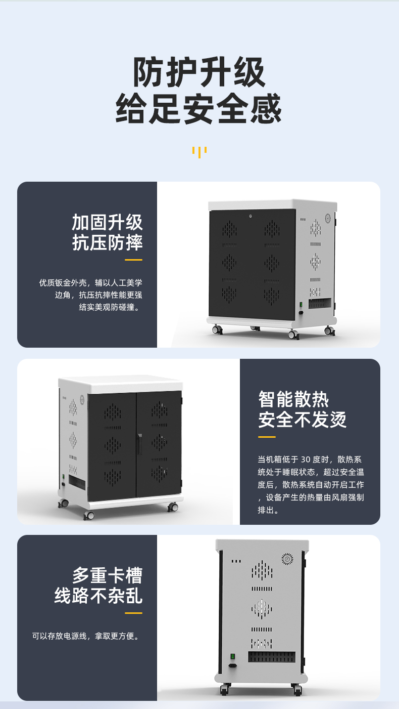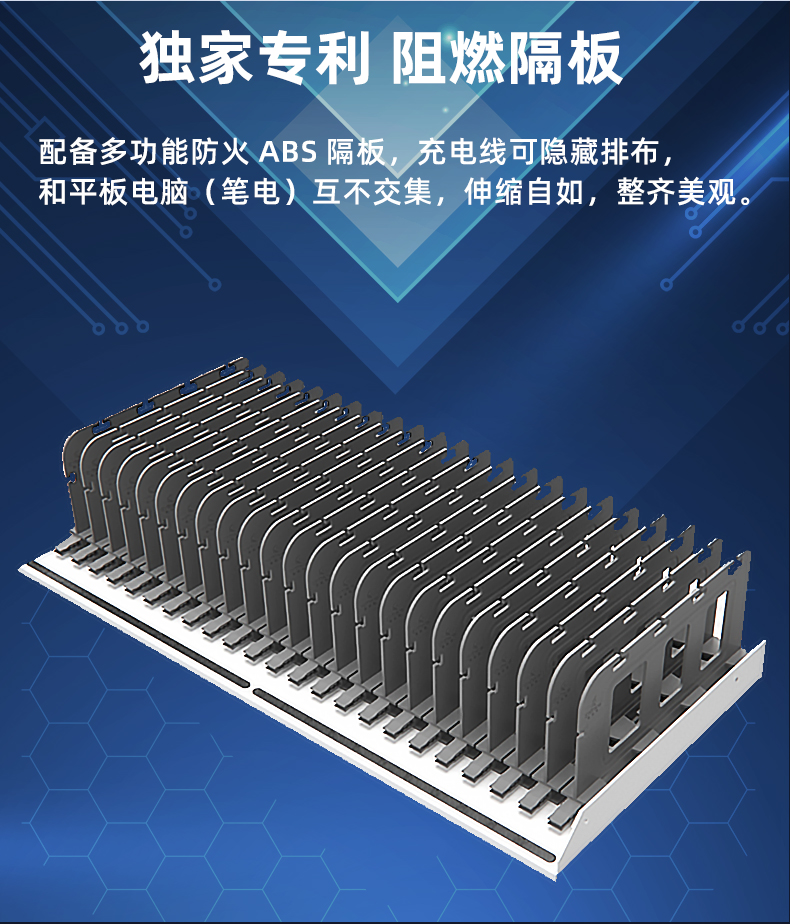 2.擺放整齊:配備多功能塑膠隔板,充電線可隱藏排布,充電線和平板電腦(筆電)互不交集,美觀方便,同時(shí)隔板上配有快捷卡位槽,隨用隨取。★★