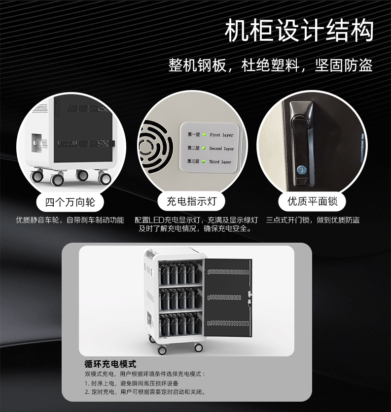 模式B:全直充模式 1)時序上電,避免瞬間高壓損壞設(shè)備 2)所有電腦同時充電。當用電環(huán)境屬于大功率安全用電環(huán)境,用戶可選擇非循環(huán)充電模式,快速充電