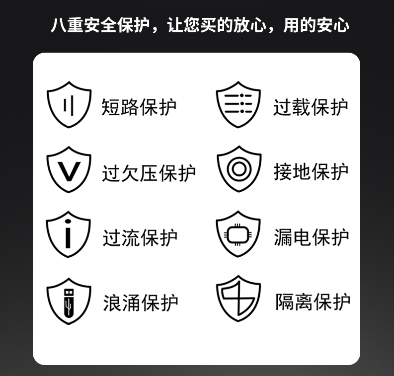 4.漏電保護:快速型漏電保護裝置,雙重漏電保護,防止人身觸電和漏電,保障安全(S4)