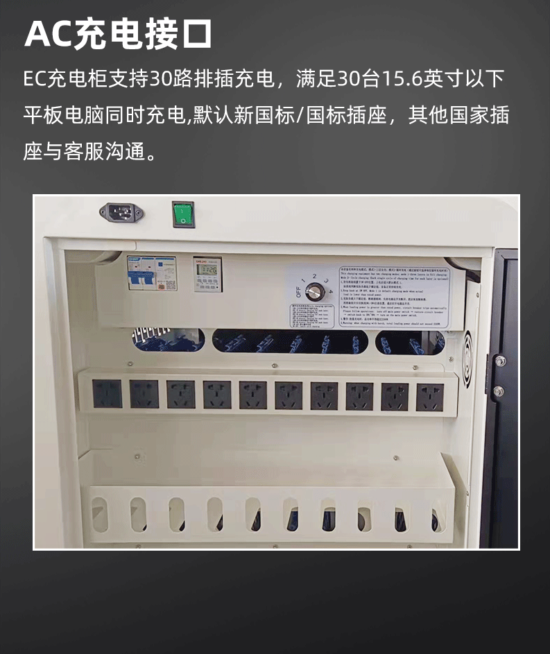 模式A:智能分充模式 1)時序上電,避免瞬間高壓損壞設(shè)備 2)智能循環(huán)充電,避免大功率用電導(dǎo)致安全事故和頻繁跳閘。該模式為智能控制部分設(shè)備輪流充電,自動循環(huán)控制。