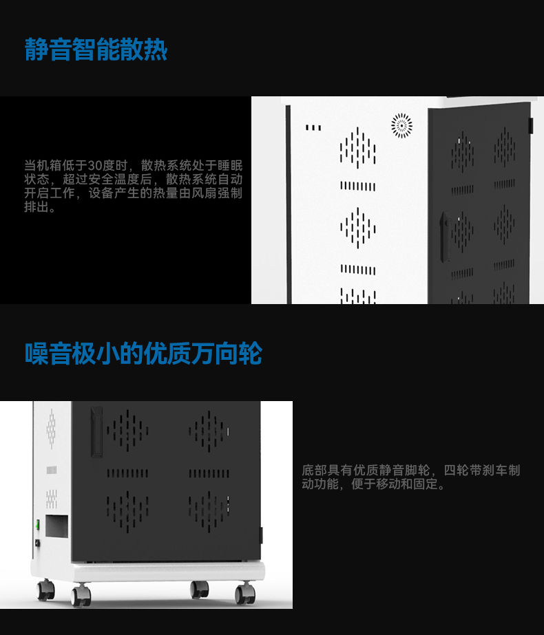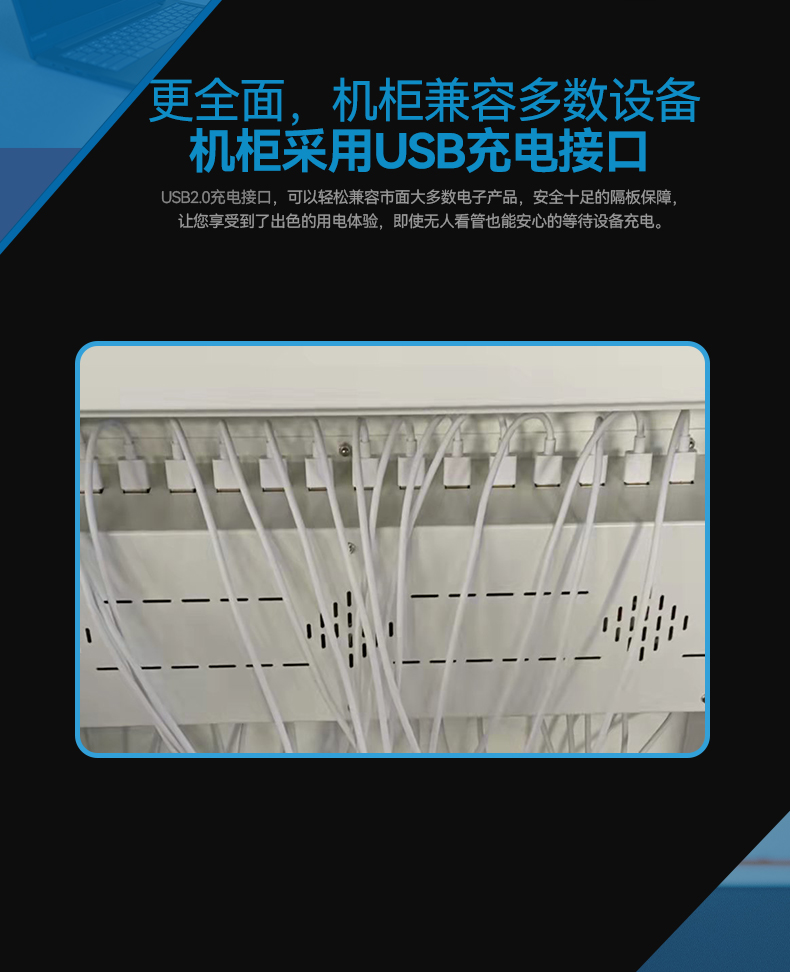 2.擺放整齊:配備多功能塑膠隔板,充電線(xiàn)可隱藏排布,充電線(xiàn)和平板電腦(筆電)互不交集,美觀(guān)方便,同時(shí)隔板上配有快捷卡位槽,隨用隨取?!铩?br />