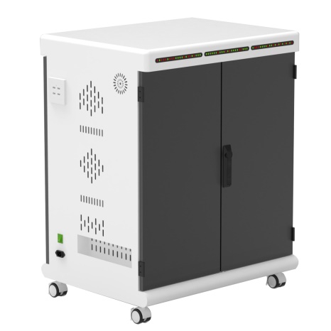 7.充電狀態(tài)顯示:配備抬頭LED指示燈面板(采用PC材質(zhì),顯示清晰,美觀耐用),對每一臺電腦的充電狀態(tài)進(jìn)行全面監(jiān)測,充電中顯示紅燈,充滿顯示綠燈。